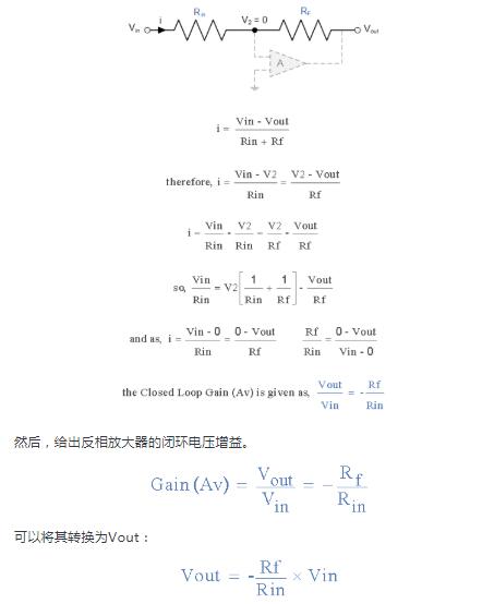 运算放大器的开环增益(Avo)可能非常高,高达1000000(120dB)或更高。但是,这种非常高的增益对我们来说并没有实际用处,因为它使放大器既不稳定又难以控制,因为最小的输入信号,仅几个微伏(μV)就足以使输出电压达到饱和并向一个或另一个供电轨摆动,从而失去对输出的完全控制。 由于运算放大器的开环直流增益非常高,因此我们可以通过在放大器的输出端与反向输入端之间连接一个合适的电阻来降低和控制总增益,从而损失掉部分高增益放大器的 然后,这产生了通常称为负反馈的效果,因此产生了一个非常稳定的基于运算放大器的系统。 负反馈是将一部分输出信号“反馈”回输入的过程,但是要使反馈为负,我们必须使用外部将其反馈到运算放大器的负或“反相输入”端子。反馈电阻称为Rf。输出和反相输入端子之间的这种反馈连接迫使差分输入电压趋于零。 这种效应为放大器产生了一个闭环电路,导致放大器的增益为闭环增益。然后,闭环反相放大器使用负反馈来精确控制放大器的整体增益,但它是以降低放大器增益为代价的。 这种负反馈会导致反相输入端子上的信号与实际输入电压不同,因为它将是输入电压与负反馈电压之和,从而给它加上了求和点或总和项。因此,我们必须通过使用分开的反相输入端的真实输入信号输入电阻器。 由于我们没有使用正向同相输入,因此将其连接到公共接地或零电压端子,如下所示,但是这种闭环反馈电路的作用导致反相输入端的电势等于交流输入端的电势。同相输入产生一个虚拟接地求和点,因为它的电位与接地参考输入相同。换句话说,运算放大器变成了“差分放大器”。 反相运算放大器电路