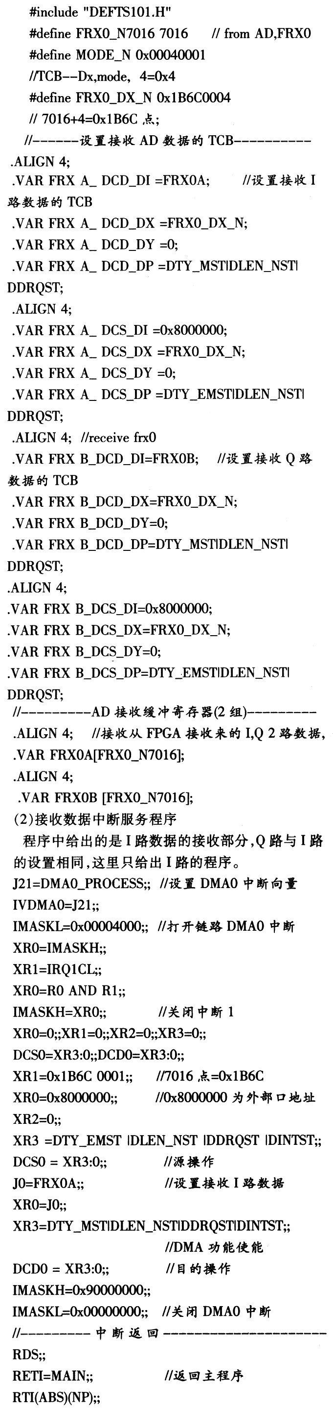 AD7656的输出接到FPGA中进行数字信号的滤波处理,然后再送入数字信号处理器(DSP)进行处理。用FPGA控制引脚CONVSTA/B/C、RD和CS的状态,可以用编程的方法或硬件连接的方式来实现。系统中的FPGA是ALTERA公司的EP1K30,DSP选用ADI公司的TS101S。此系统的外围电路比较简单,比较容易实现,具有真正的高速、高性能数字信号采集功能。 3.3应用程序举例 (1)A/D数据采集部分的初始化部分程序