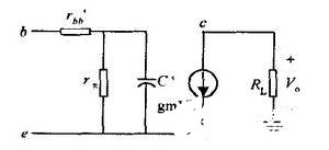 图3 双极晶体管的基本混合P型模型 一般模拟设计中采用共发射极增益级, 可以同时获得电流和电压放大。图4为基本共发射极电路, 既可用来描述单端倒相放大级, 又可以用于差分增益级的差模半电路。其频率响应可以用图5 所示的采用密勒近似的混合P型模型近似。