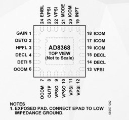 ADI公司推出的具有新型模拟控制的可变增益放大器(VGA)的RF集成电路AD8368,在整个频率范围内提供极好的线性,用于无线基础设备如蜂窝基站无线电收发器.AD8368最佳用来维持基站无线电收发器的动态范围,保证接收到的弱信号和强信号能进行有效的处理和维持。此外,AD8368由于在片内集成了精确的RMS功率检测器而简化和降低所需的外接元件数量,该器件使得在小型4x4mm 封装内组成完整的自动增益控制回路。