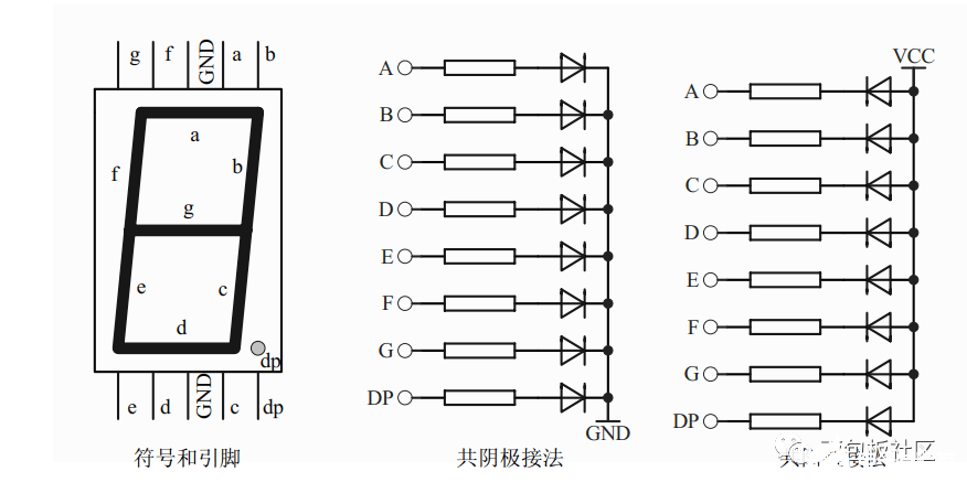 光电检测电路 第五部分:显示电路LED( Light Emitting Diode 发光二极管)显示器是由发光二极管构成的最为常用的显示器件。数字 LED 显示器利用7个发光二极管显示数字,通常被称为七段 LED 显示器、或者数码管。另外, 数码管中还有一个圆点型发光二极管, 用于显示小数点。