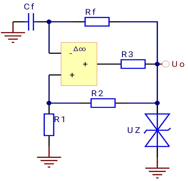 将矩形波信号发生电路加上积分电路,即可得到三角波发生电路。T=4R1*R3*C/R2 F=R2/4R1*R3*C 调节R1,R2,R3和C的值,可改变振荡频率,调节R1,R2的值,而调节R1,R2的值可改变三角波的幅值。 4、锯齿波发生电路;