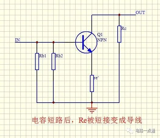 信号流向 交流等效电路和直流等效电路 在实际设计之前,我们先学习一下三极管放大电路的等效电路,它们的特点如下 对于直流等效电路,电容相当于开路(隔直通交) 对于交流等效电路,电容相当于短路,电源正负极相当于短路,引入发射极本征电阻re' = 25/Ic(mA),发射极本征电阻受三极管温度影响,发射极本征电阻和发射极串联