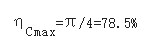 此公式可作为用来选择功率管的依据。 集电极效率η 集电极效率是集电极输出功率与电源供给功率之比,它与晶体管的电压利用系数(晶体管输出电压与电源电压之比)有关,当电压利用系数为1时效率最高,即: