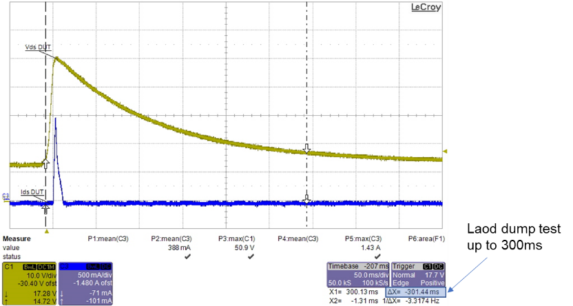 ▲图 16. STL325N4LF8AG的ISO 7637-2 pulse 5a测试的测量波形