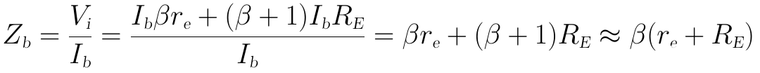 得到上式后,就可以利用Vi/Ib来计算BJT的输入阻抗Zb了,上式稍微化简一下可得:
