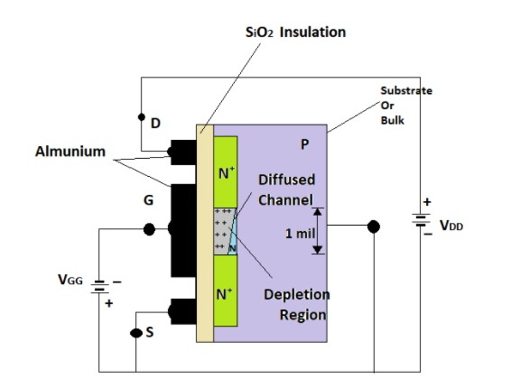 耗尽模式和增强模式MOS管是什么 耗尽型MOSFET: 耗尽型 MOSFET 类似于开路开关。在此模式下,施加栅极到源极电压 (VGS) 以关闭器件。当栅极电压为负时,正电荷会在通道中累积。这会导致沟道中的耗尽区并阻止电流流动。因此,由于电流的流动受耗尽区形成的影响,所以称为耗尽型 MOSFET。