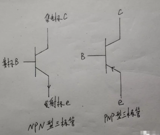 三极管在我们数字电路和模拟电路中都有大量的应用,学好它对学习硬件电路与单片机都有很大的帮助。 一、初识三极管 晶体三极管也称晶体管或三极管,它是电子产品中应用相当广泛的半导体器件之一,三极管是一种很常用的控制和驱动器件,常用的三极管根据材料分有硅管和锗管两种,原理相同,压降略有不同,硅管用的较普遍(本文例子也使用硅管),而锗管应用较少,并且三极管还分为两种类型,分别是 PNP 型和 NPN 型。如下图所示: