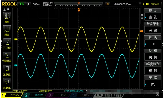 以下是电路带1KΩ负载时,输入与输出波形对比