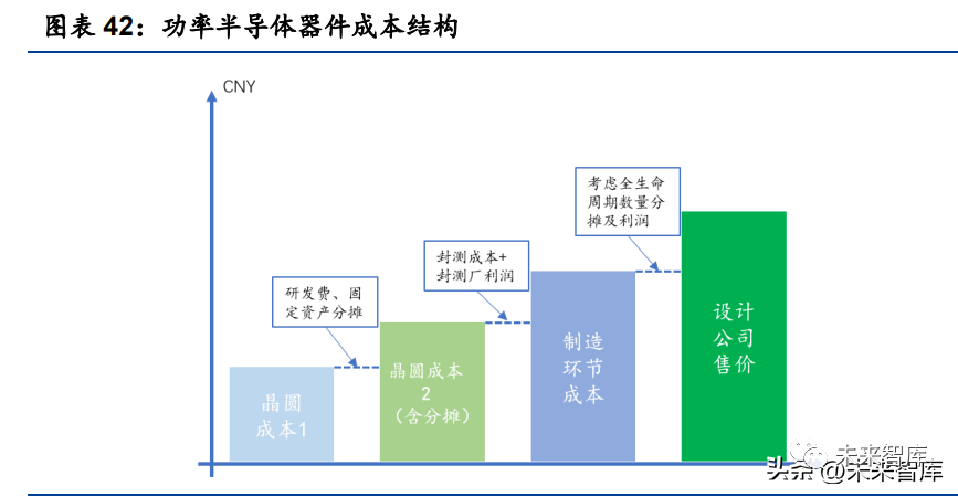 器件设计:功率半导体自诞生以来,从半导体基材的迭代、微沟槽结构 的优化、先进封装、大尺寸晶圆的应用等多个方面进行技术创新。据 Yole 数据,功率半导体器件每隔二十年将进行一次产品迭代。相比其他半导体, 迭代周期相对慢,这将给国内功率半导体厂家留有充足的发展时间。目前国内厂商面临的挑战主要包括:1)低功耗与高可靠性以及高功率密度 三者的平衡;2)满足高性能和小型化以及低成本三者的平衡;3)产品平台 化和客户定制要求之间的冲突和平衡;6)车规产品设计、制造等管理体系 和流程不健全; 晶圆制造工艺:这方面的挑战有:1)半导体设备长期依赖进口,采购周期 长且成本高,设备调试时间长,缺乏经验;2)生产过程管控以达到晶圆一 致性和可靠性的目的;3)适用于车规的材料选型,以达到散热、高结温要 求;4)小尺寸、先进封装与成本之间的冲突等。 封装测试:这方面的挑战有:1)封装环节,键合引线、模具、框架等材料 的选择;2)功率半导体模组的散热问题和可靠性两者的平衡;2)缺乏车规 试验条件或测试经验,具体试验参数如何设定没有经验。 SJ MOSFET、IGBT、碳化硅 MOSFET 作为中高端功率半导体器件,国内厂家 在器件设计、晶圆制造工艺和封测环节都面临不同程度上的挑战和壁垒。对于追赶者 的国产功率半导体厂家而言,技术作为发展的第一要素,技术持续迭代和技术方案的 创新或是超越国际巨头、主导市场地位的最重要条件之一。