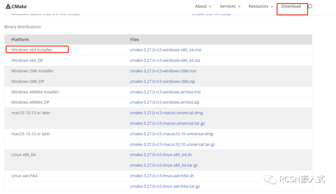 如果想升级更高的cmake版本,网络搜索cmake,进入cmake官网(https://cmake.org),点击download,可以下载最新的,也可以下载开发者自己喜欢的不低于3.13版本。