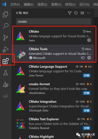 2. vscode下cmake插件 在扩展商店搜索cmake,安装cmake和cmake Tools