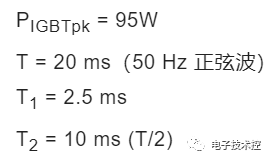 ![]() 需要了解的是,损耗以半正弦波变化。 需要考虑从峰值到过零的变化,以得出器件的平均功耗。 IGBT 和二极管功耗计算 测量完这五个损耗分量后,需要将它们与测量条件相关联,以便计算每个芯片的总功耗。