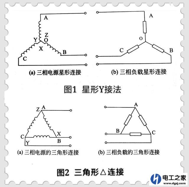 如下图1 星形Y连接。 ![]() 星形连接也称为Y接法,即,将三相绕组的末端连在一起,从始端分别引出导线;通常线圈绕组的始端用字母A、B、C表示,末端用X、Y、Z表示。线圈绕组的始端引出的导线称为相线(也称为火线),三相绕组线圈的末端连接在一起的公共点称为中性点,简称中点,用字母O表示;从中性点引出的导线称为中性线(也称为零线),。有中性线的三相输电方式称为“三相四线制”;不引出中性线输电方式称为“三相三线制”。前者用于低压供电系统;后者用于高压输电系统。 三相负载的星形连接和三相电源星形连接相同。 在三相星形连接中,由于流过每相绕组线圈或负载的电流就是流过相线的电流,所以星形连接时,线电流等于相电流。 值得注意,在星形连接中,线电压超前相电压30º,线电压的有效值是相电压有效值的√3。 如果三相电源和负载接法为三角形△,此时三角形连接中相,线电压、电流关系如何?见上图2三角形△连接图。 实际上三角形接法,是把一相绕组线圈的末端与相邻绕组线圈的始端顺序连接起来,形成一个闭合的三角形△,再从三个连接点引出三根端线。而三相负载的连接方法也是相同的。 在三角形连接中,每相绕组线圈两端的电压就是线电压,所以说在三角形连接中,相电压等于线电压,那么对于负载电流则也是相同的。 在三角形连接中,线电流滞后与相电流30º,线电流的有效值是相电流的有效值的√3。 (责任编辑:admin) |