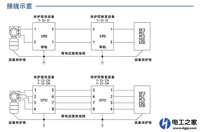 在工业自动化领域,防雷是非常必要的工程。如果处理不当,会造成非常大的损失。 雷击的主要原因是由于一次设备发生雷击后在二次回路设备造成的浪涌超过了设备承受的能力而损坏设备的,浪涌的主要形式是电源浪涌、信号浪涌。 在生活中常见的雷电形式及雷害如下: 1)直击雷,指雷电直接击在建筑物、动植物,人类,因电效应、热效应和机械效应等造成建筑物等损坏以及人员的伤亡。 2)感应雷,指雷电放电时,在传输信号线路、电力线、设备间连接线产生电磁感应并侵入设备,使串联在线路中的电子设备受到损害。 3)雷电浪涌,指雷击发生时在电源和通讯线路中感应的电流浪涌引起的电子电气设备损坏。由于电子设备耐压、耐过电流不及感应雷及操作过电压浪涌的影响。浪涌电压可以从电源线或信号线等途径窜人电脑设备。信号系统浪涌电压的主要来源是感应雷击、电磁干扰、无线电干扰和静电干扰。 那么针对以上类型的雷电形式,如何进行预防呢? 一般分为两部分进行: 1)外部防护: 首先可以使用建筑物的避雷针将主要的雷电流引人大地;其次利用建筑物中的金属部件以及钢筋可以作为不规则的法拉第笼,起到一定的屏蔽作用;第三在建筑物各点的做到电位均衡,避免由于电位差危害设备;第四是保障建筑物有良好的接地,降低雷击建筑物时接点电位损坏设备。 2)弱电系统的内部防护: 从EMC角度,可以考虑以下几个方面进行防治:防直击雷,防感应雷电,防雷电电磁感应,防地电位反击以及操作瞬间过电压影响。 做到多级防护。 2.1)电源部分,设备的电源雷电损坏主要是通过线路侵入。对380V低压线路应进行过电压保护,按国家规范应有三部分:在高压变压器后端到二次低压设备的两端加防雷器;在二次低压设备的总配电盘至二次低压设备的配电箱间加装防雷器;在所有重要的、精密的设备以及UPS的前端应对地加装避雷器或保护器。 2.2)信号部分,在重要设备前端安装相应的避雷器。 2.3)等电位及接地,所有防雷系统都需要通过接地系统将雷电流泄人大地,从而保护设备和人身安全。 具体防护措施 1)交流电源部分 从以上几个方面,我们除了外部防护,更要多好内部的防护。因作者提到的是步进驱动器,那么需要注意三相电源,单相电源,直流电源的防雷措施。由下图我们可以很清晰的知道如何做好交流部分的防雷保护。通过使用三相和单相交流电源防雷器可以保护交流回路。 2)直流电源部分 下图展示了使用直流电源防雷器对直流部分进行保护。 3)信号部分 一般有计算机网络,通讯系统信号,安防系统各类信号等等。这里可能主要用到的是通讯系统部分信号。 下图主要是实现对现场开关量,模拟量信号进行保护。 下图主要实现对现场串口通讯信号进行保护。如RS232,RS485等。 那么通过以上完备的防雷措施,接地措施等,可以有效的防止雷击的发生,保护人身安全,和设备安全。