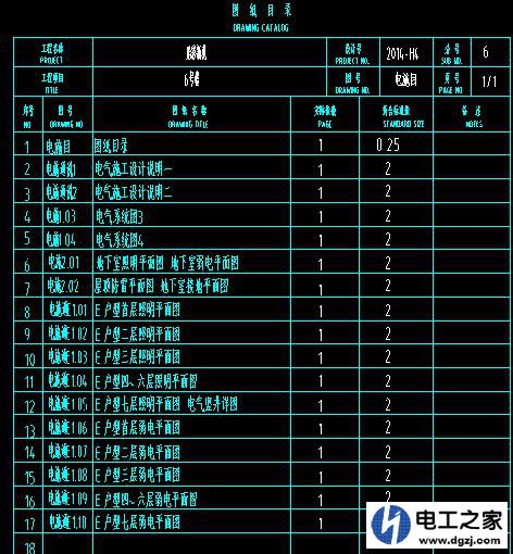 第二步看目录,记住每一项内容有几页,例如设计说明一设计说明二对应的图号是电施说1电施说2;这样就可以熟悉的把图纸前后对照。