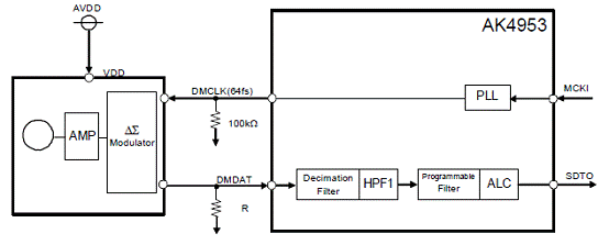 本文介绍了AK4953A主要特性,方框图, 立体声和单声道的数字MIC连接案例, 3线串接模式的系统连接框图以及AKD4953-A评估板主要特性,方框图和电路图.