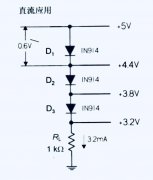 二极管 的降压作用 当 电流 通过一个二极管时,对于一个硅二极管会在其两端产生一个约0.6V的电压降(锗二极管压降约为0.2V, 肖特基 二极管约为0.4V,这些值都很小,适用于特殊二极管...