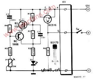 礼貌灯电路--Courtesy Light 15 seconds delayed switch-off A good idea for bedroom lamps Parts: R1____________470R 1/2W ResistorR2____________100K 1/4W ResistorR3______________1M5 1/4W Resis