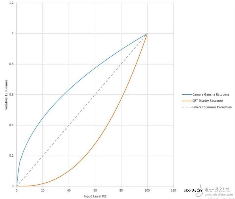 对伽马校正的需求源于CRT电视显示器的发明。CRT使用电子束光栅来照亮显示器前面板背后的荧光涂层。所施加的栅极控制电压按比例地控制发光强度,并遵守冥次法则:发光强度 = 控制电压的伽马次方。这种控制具