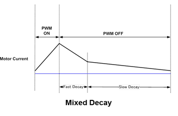快速和慢速衰减的混合称为混合衰减,其中电流衰减开始快速,并且在一定时间后切换到慢速。这种方法在纹波(以及电机噪声)和电流稳定时间之间进行权衡,从而产生更好的电机性能。