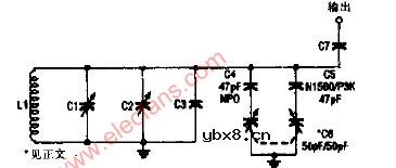 可调视频振荡器的温度补偿电路 利用NPO和N1500陶瓷电容的LC电路可通过微分电容获得温度补偿,C6是具有两个定片和一个公共动片的微分电容,当一个电容(定片)取最大值时,另一个取最小值,C1,C2和C3分别为调谐电容