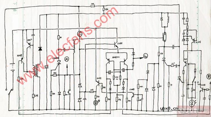 银燕闪光灯电路图 -BY-30AB3P for Minolta 1、电路图中带圈的L、M和R对应热靴的左、中和右接点。2、当初一直使用镍镉电池,一点没事儿。