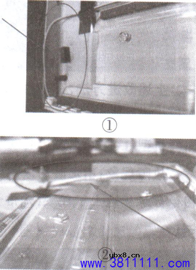 机型:LC42GS82DC,屏型号为LC420WUG(SC)(U1),平台为MSD286(35014929),电源采用34006886。 故障现象1:图像有墙纸状干扰。 分析检修:开机图为墙纸状干扰,测N303输出的1.8V电压大幅度上下波动,测其供电输入3.3V也是大幅度波动,3.3V由N304 供出,测N304输入端口的12V稳定,测其外围元件发现VD363击穿,更换VD363后,1.8V及其VGH等电压已稳定,整机恢复正常。 故障现象2:背光亮无图。 分析检修:通电,背光亮无图,测V801截止,V806导通,两者状态异常,检测N501的167脚输出的控制电压正常,判定应是⑥脚至V806间出现了断路,断电检测发现一过孔芯断,连接后通电,V801导通、V806截止,状态正常,故障排除。 故障现象3:背光源连接线引起LED屏暗斑。 分析检修:可能原因有两种,一是背光源灯棒(以下简称为灯棒)安装偏差, 导致与导光板相碰撞,造成灯棒插座脱落引起;二是灯棒连接线的排布不合理。经查本例为第二种原因引起,下面介绍其改进方法。 改进前的灯棒连接线的排布图如图1、图2所示。当灯棒连接线由灯箱侧立面过渡到灯箱主平面时,此段连接线悬空形成了一定角度的夹角线,当安装导光板后,紧固边框易造成导光板压迫此段悬空的连接线,因在灯箱主平面,上的灯线有胶带固定,不易扯动而灯箱主平面至灯座间的连接线,无胶带固定,此段连接线必然会受到导光板压迫时的扯动,严重者造成灯棒.上的连接线插座松动或脱落,从而造成LED屏的背光源灯棒局部失去供电不发光,LED屏幕上显示出现局部的暗斑。同时图1的连接线排布,还易造成操作不当时,把连接线挂在侧立面的金属框.上面(或外边),当边框固定支架紧固时,挤压破连接线胶皮,造成连接线与金属框短路,产生屏无光等现象。 改进后的灯连接线排布如图3所示,灯连接线从灯箱侧立面灯线插座处垂直进入灯箱主平面,这样,灯连接线沿灯箱背板的四壁排布,可避免导光板对灯箱侧立面的灯连接线插座处过渡到灯箱主平面的此段灯线的扯动,造成灯连接线插座连接不良或脱落的现象,也就从根本上解决了因灯连接线排布不良引发的LED屏幕的局部暗斑的故障现象,如图4所示。