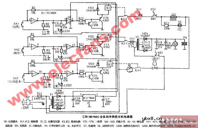 三和SH-9602全自动冷热饮水机电路图