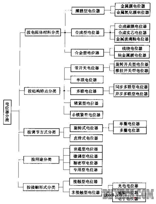 电位器的种类 随着电子应用技术的不断发展,电位器的种类十分繁多.且各有特点,如图3-6所示、按电位器电阻体材料分类,可分为薄膜型电位器、合成型电位器及合金型电位器。电位器按结构特点来分类,又可分为单联、多联
