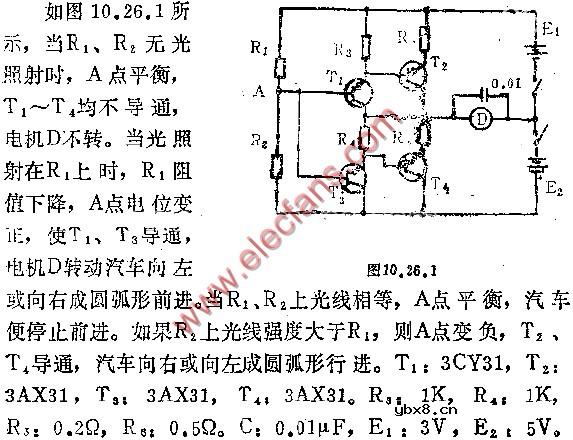 将此电路装入玩具汽车,汽车就能自动对光停车。