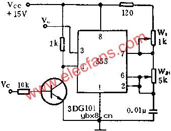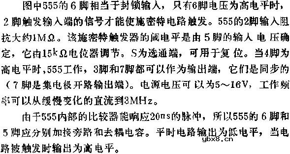 时基集成电路组成可变阈电平的施密特触发器电路图