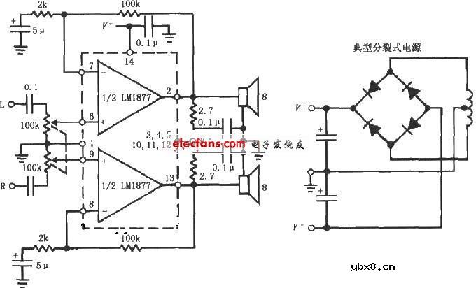 基于LM1877的同相音频功率放大电路