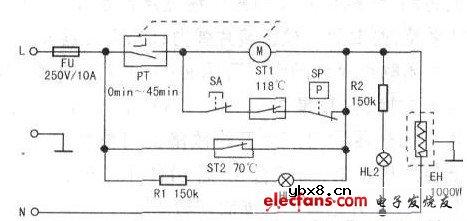 飞鹿TL30-700B型电压力锅采用全自动控压和保湿,安全保护功能完善,能防溢、防爆、防堵,该锅工作压力为35kPa~80kPa.限压压力为90kPa~lO0kPa,保压时间为Omin~45min(可调),其电路如图所示。