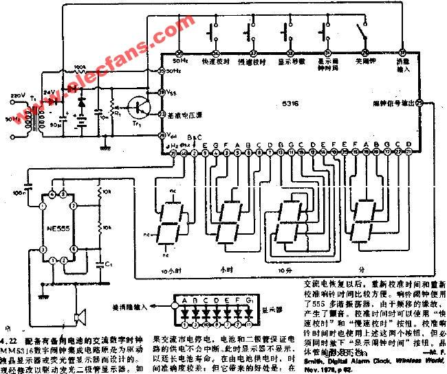 配备有备用电池的交流数字时钟电路