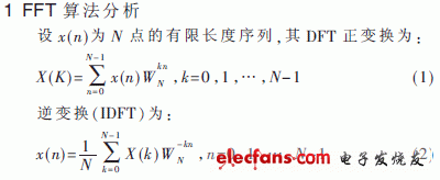 在数字信号处理中,离散傅里叶变换(DFT)是常用的变换方法,它在各种数字信号处理系统中扮演着重要的角色。快速傅里叶变换(FFT)[1-2]是离散傅里叶变换的快速算法,它是根据离散傅里叶变换的奇、偶、虚、实等特