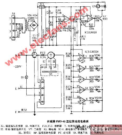 长城牌FS53-40温控落地扇电路图