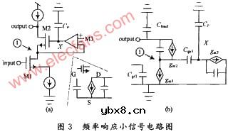 增益提高技术,虽然大幅度提高了放大器的电压增益,但是电路变复杂了,频率响应必然受到影响,为了分析这种技术给主运放带来的影响,可以画出频率响应小信号等效电路图,如图所示。
